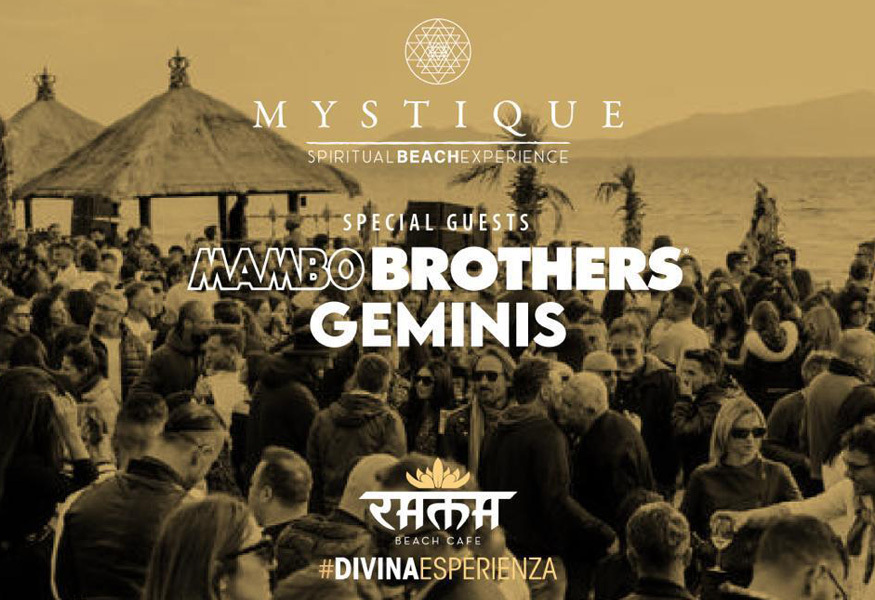 Il primo maggio, nella cornice incantata del Rama Beach Cafè a Varcaturo, ci sarà Mystique: Spiritual Beach Experience a partire dalle 11 del mattino fino a sera, con Mambo Brothers & Geminis per respirare la magica atmosfera della isla bonita.